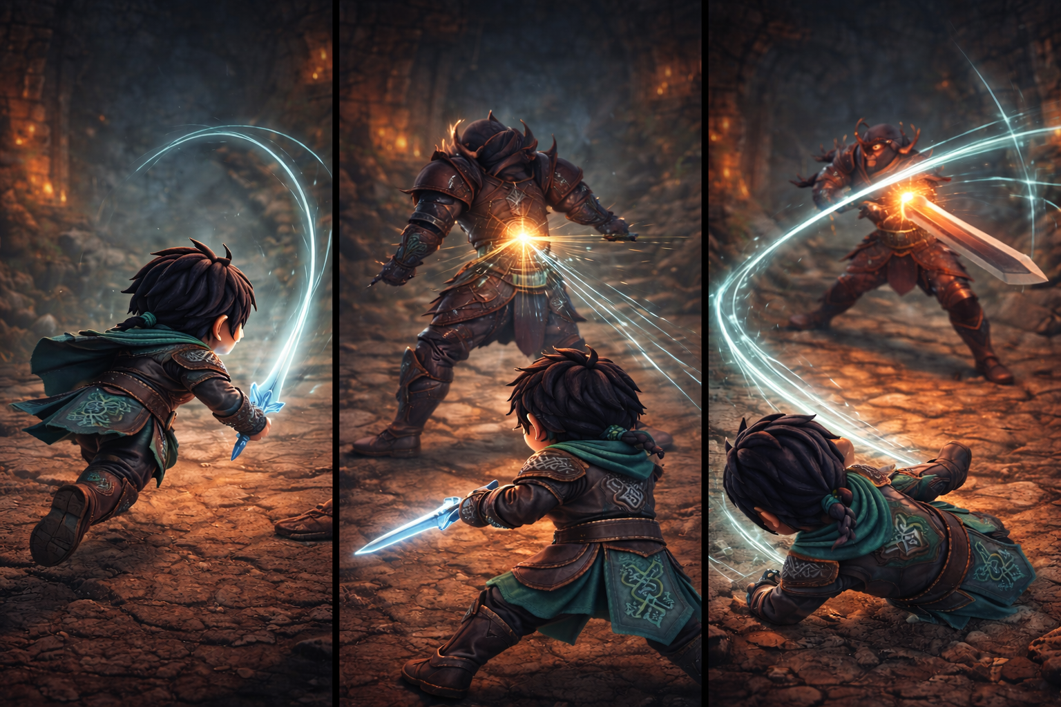 Enemies exist differently across realms. Positioning and timing shift depending on where you fight.